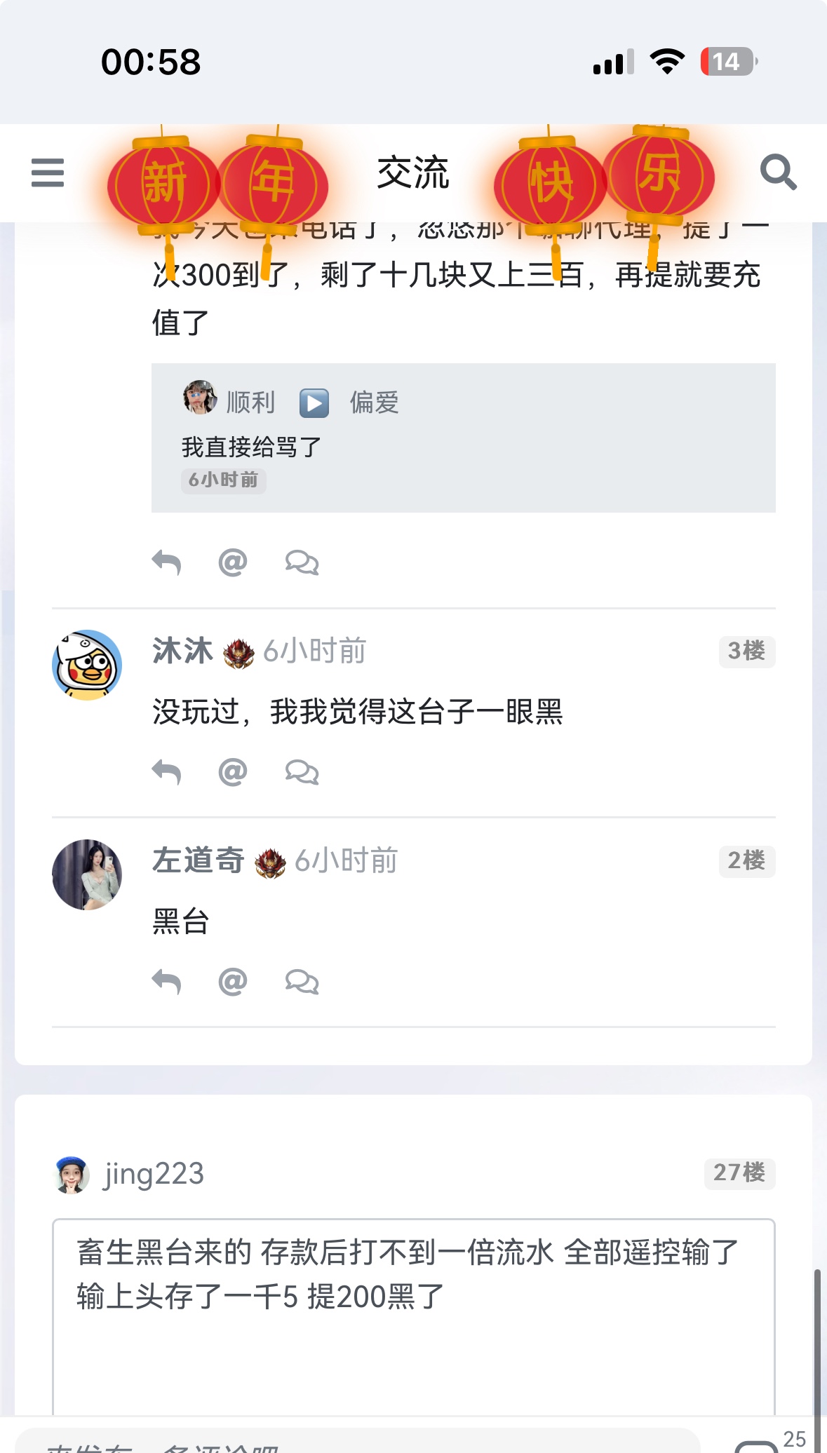 来电话特邀给58元 故意遥控给你赢 赢多少提款不了 必须存款相同金额才能提 存后黑了 游戏整人 私人遥控黑台