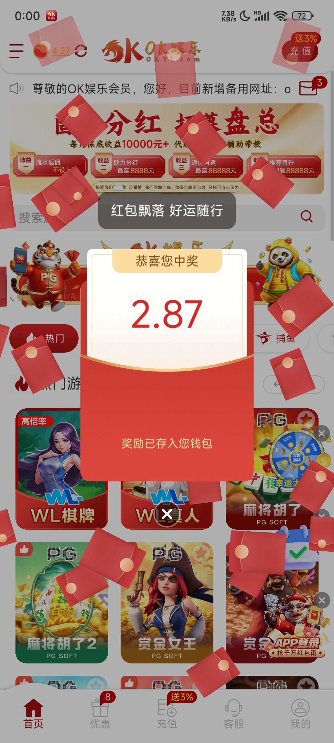 每天过12点有两波免费红包雨,赌神项目,瘫痪的老哥搏一搏 地址 okyl.com