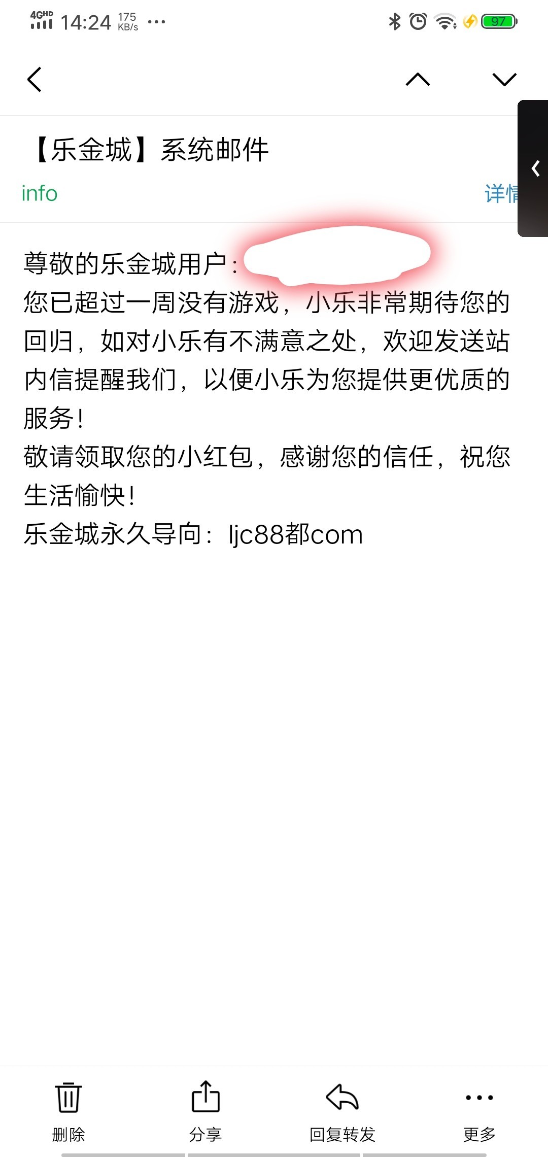 乐金城邮件18红包,链接在截图里
