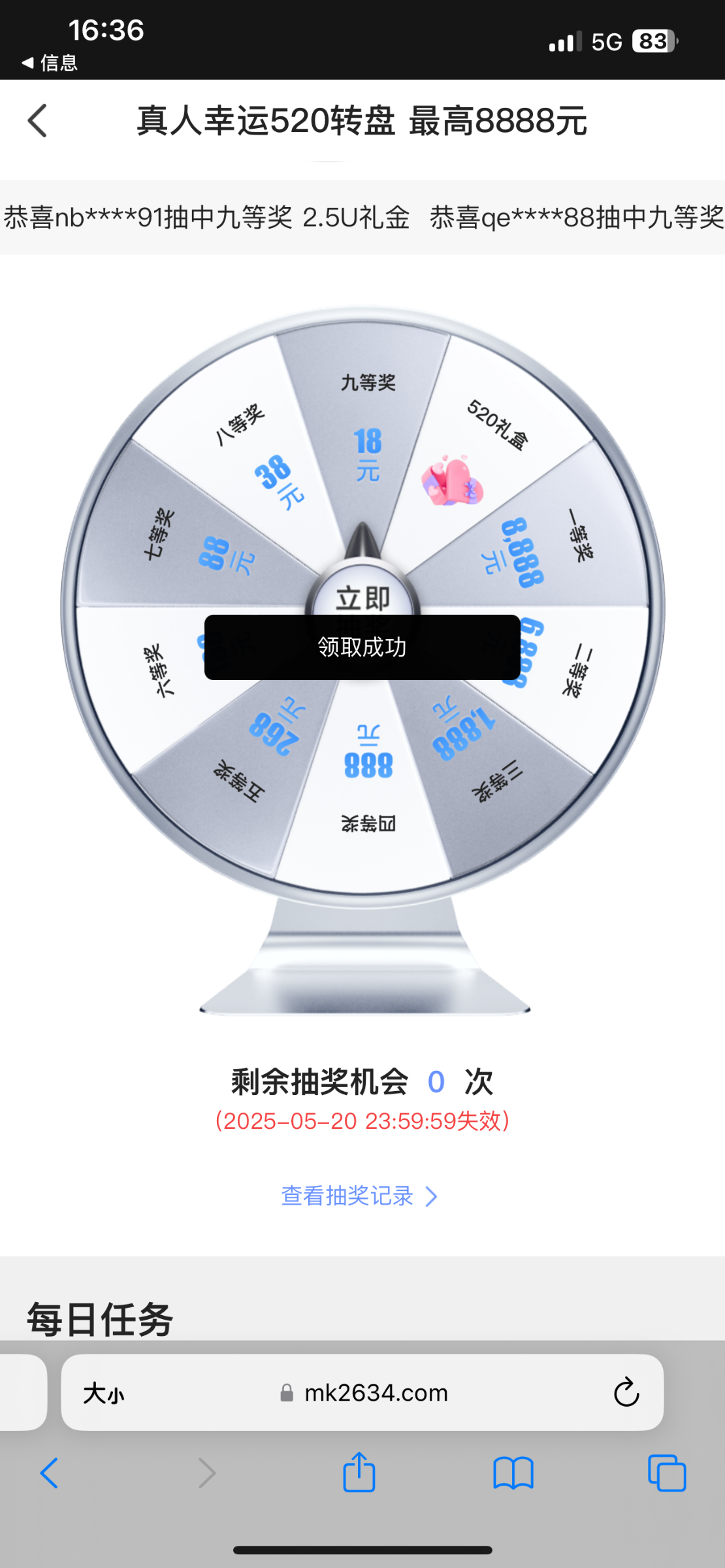 520活动转盘送了一次机会送了送了18 网址:mk.com