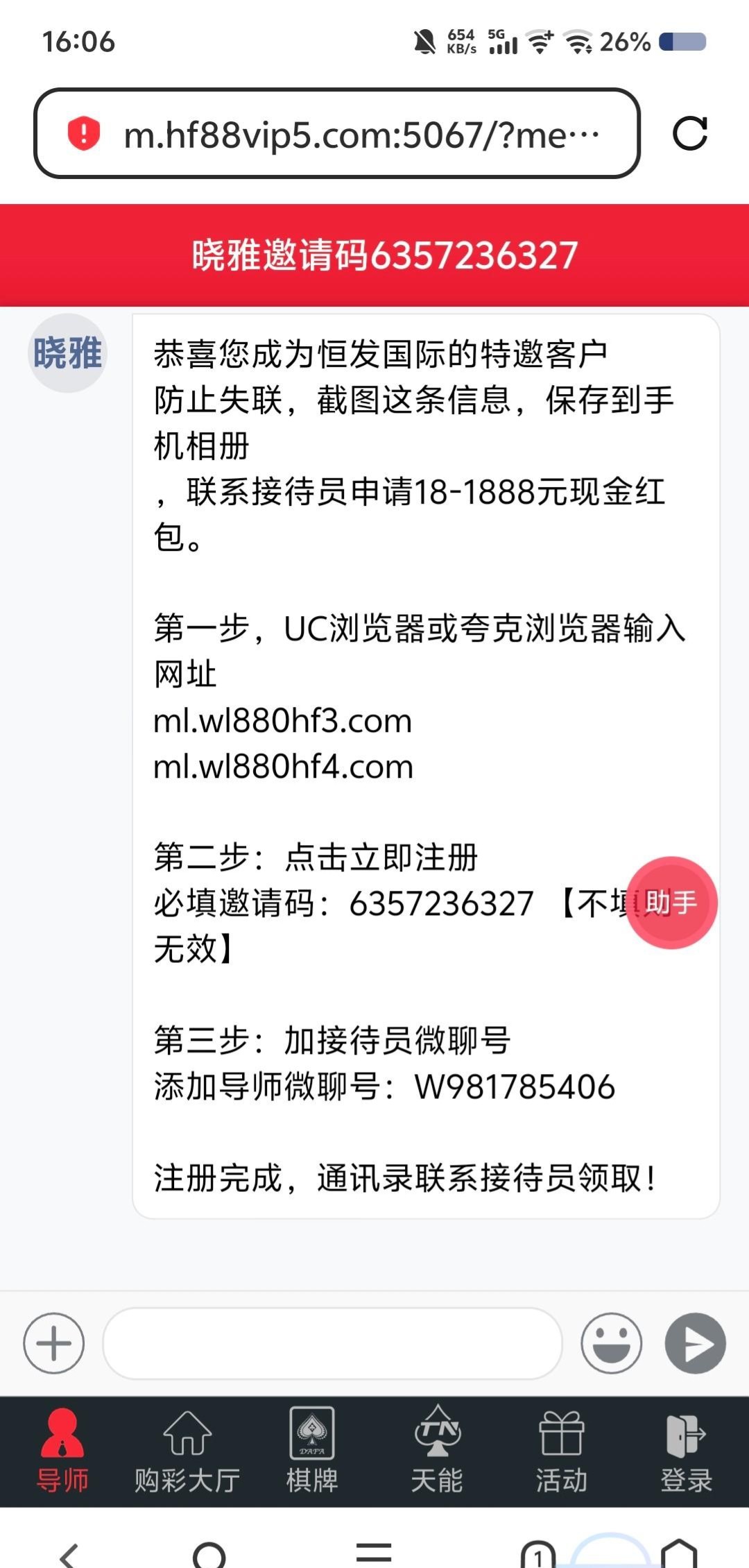 恒发找微聊客服碰瓷18 首次只能提卡 我没卡提输完了 链接和邀请码在图片