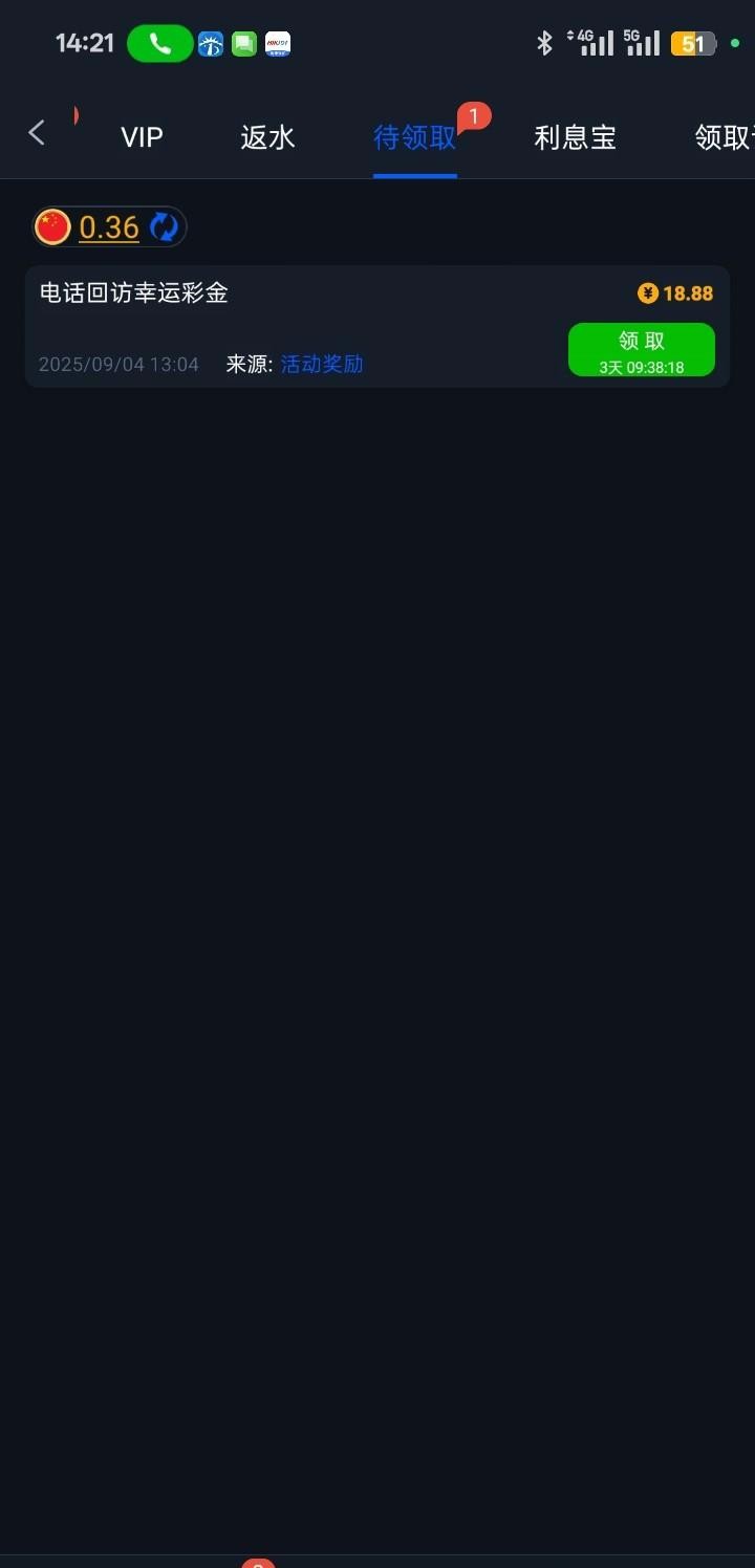 我接到电话的,下载登录在优惠待领取那里领,有漏接电话的可以去试试462.com