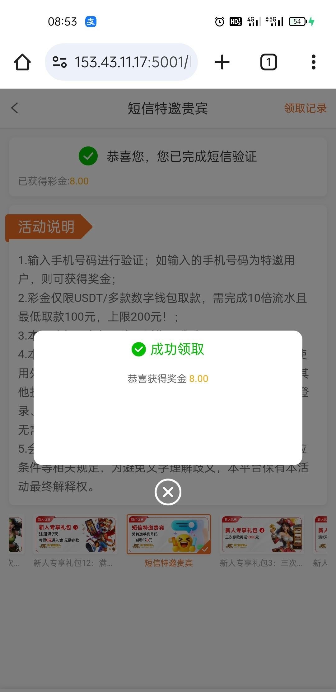 点优惠领取特邀彩金8块,不符合的过几天再去看看