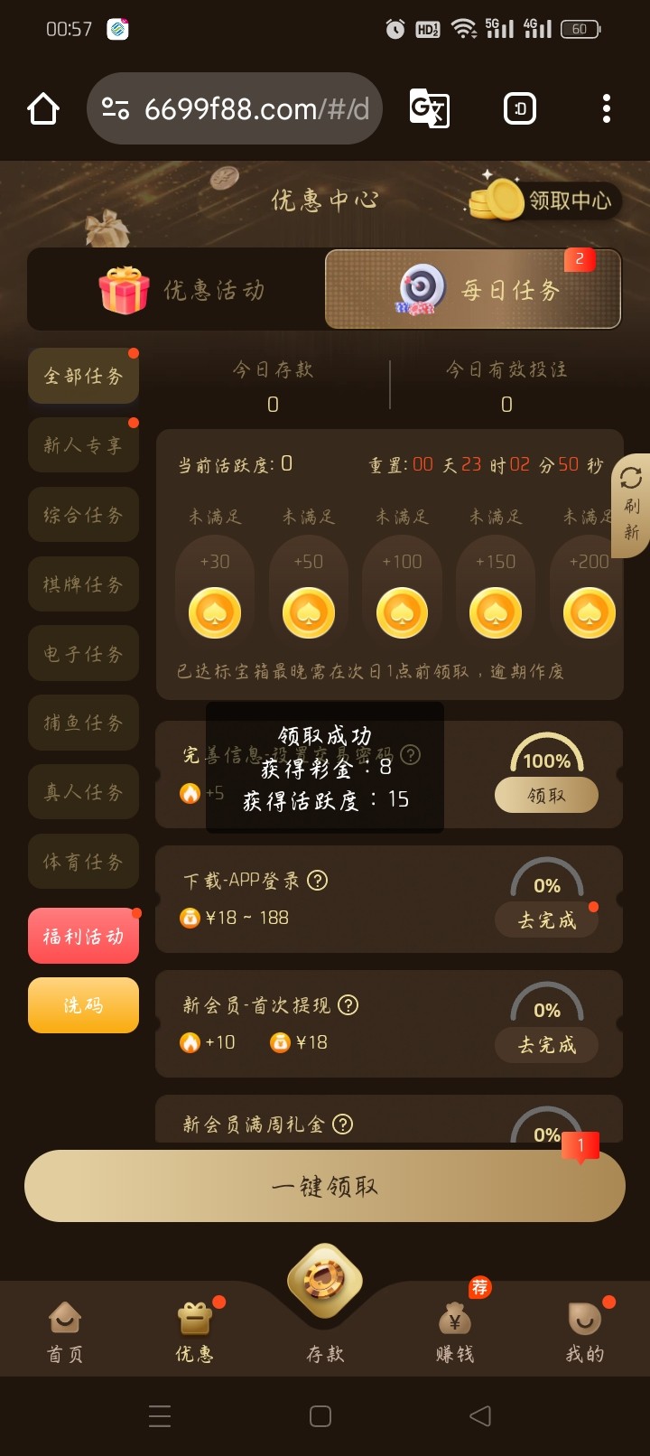 都是送8块没名额的晚上12点刷新,半黑台有些人黑有些不黑,点优惠每日任务设置信息,然后点刷新就能领了