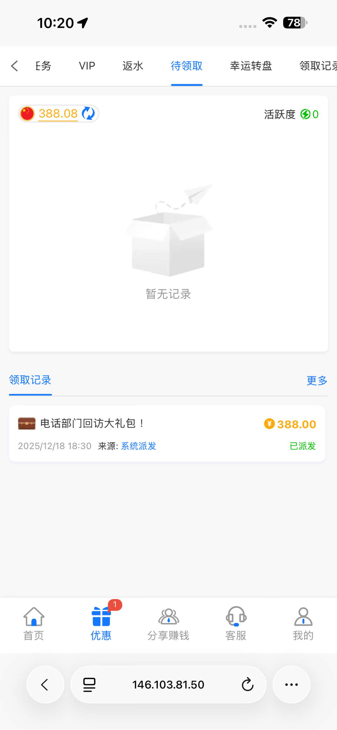 有号的可以去看看,昨天送的没接到电话,送了388,有就有没有就没有