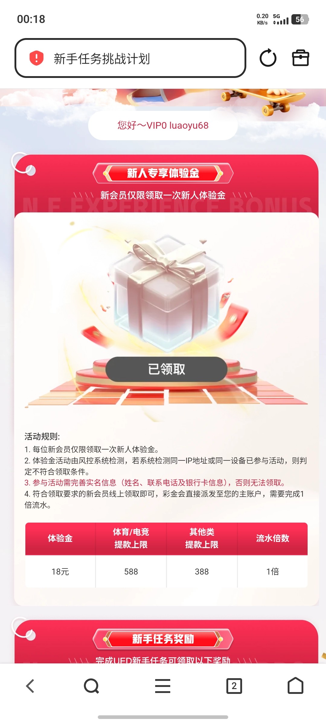 注册绑定银行卡手机号领取18
