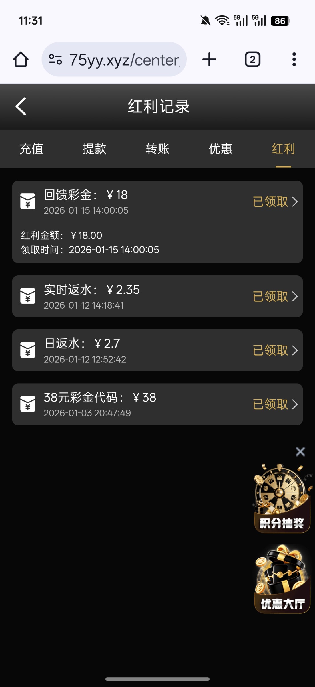 乐游回归彩金