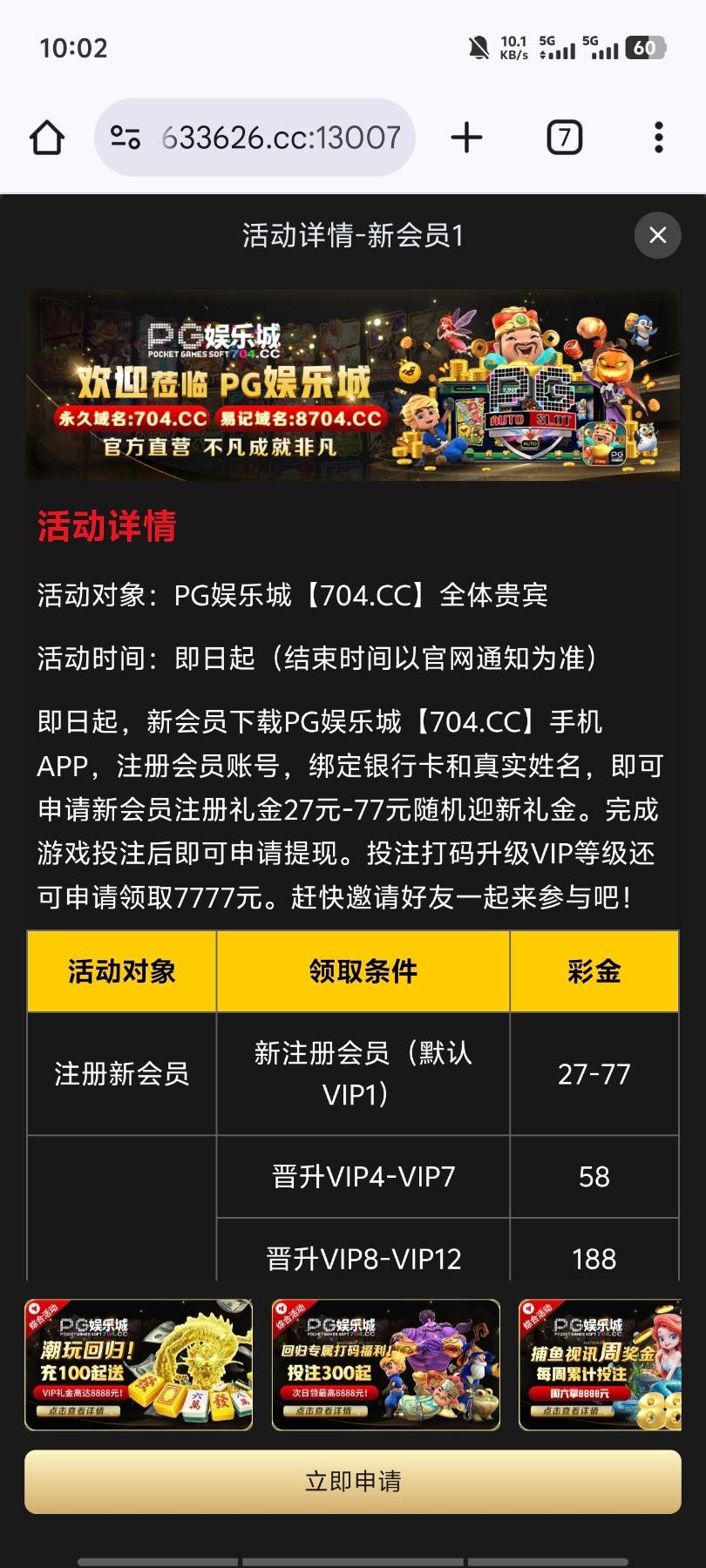 网站 704.cc  注册绑卡送27,不用下载