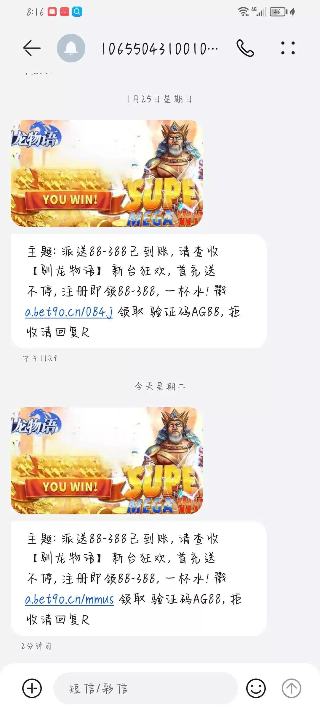 给我发了三次短信刚才拿短信图片去问客服就让我注册 报手机号码之后就给了 给了38 要打5倍流水 只能提现200