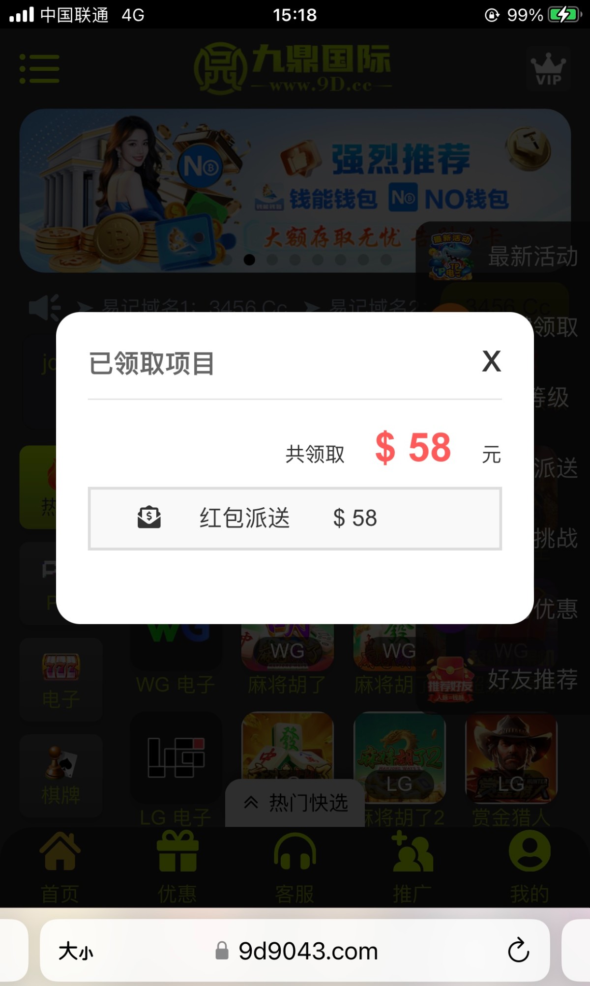 刚刚接到电话 送了58