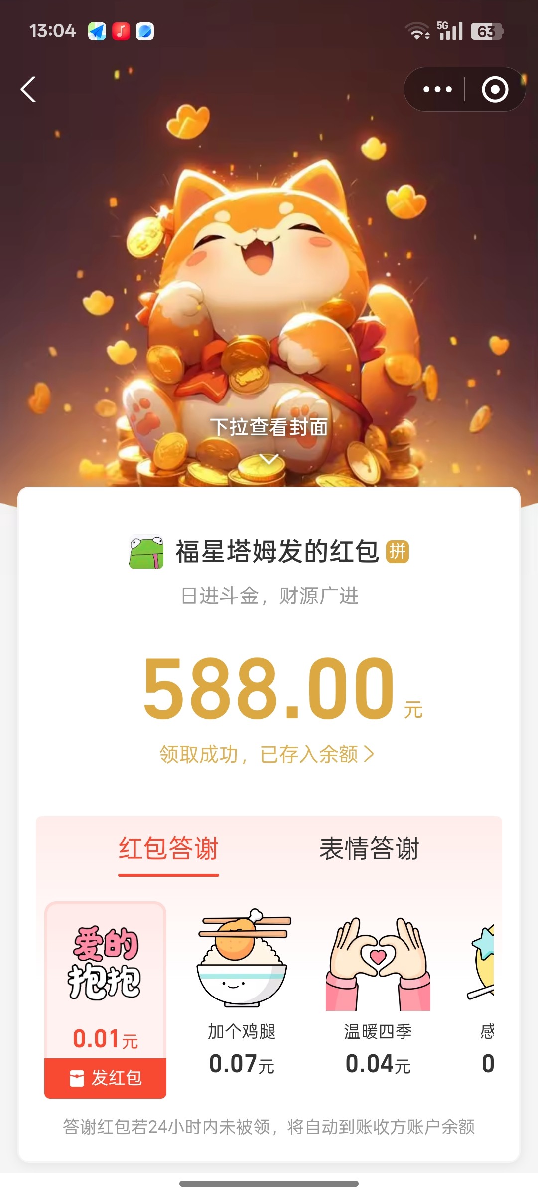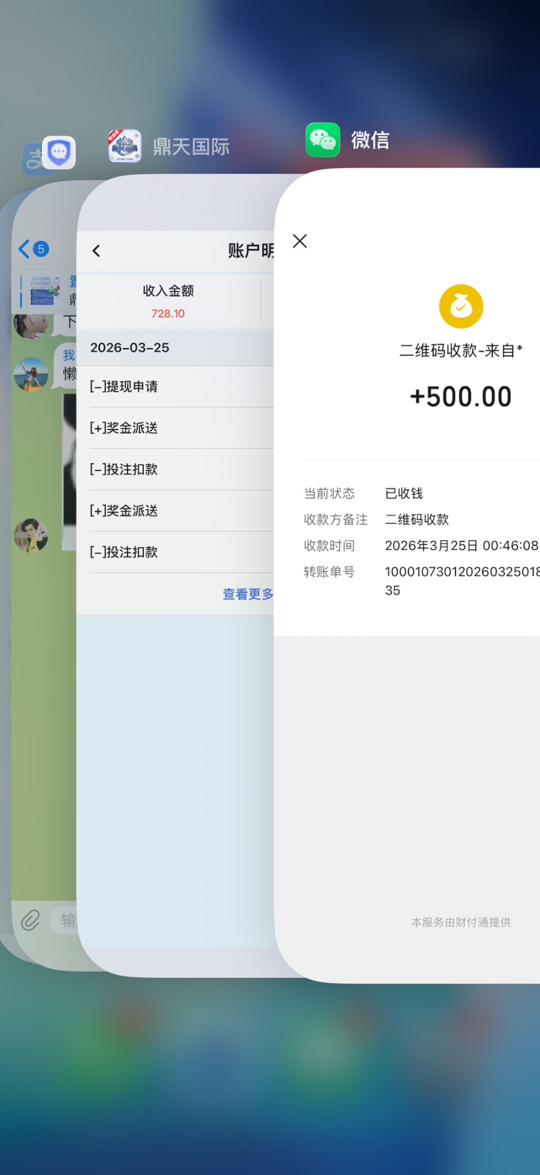 鼎天返现到账
